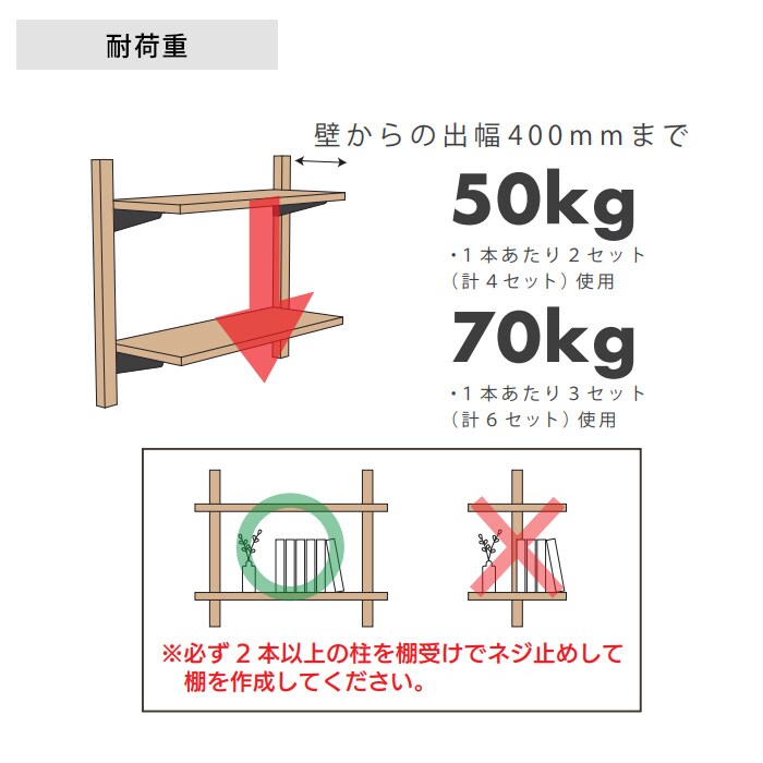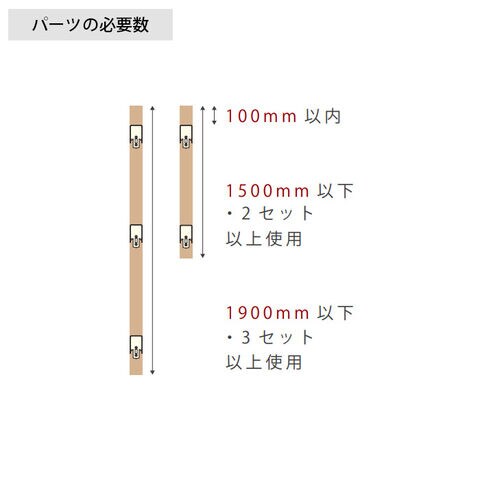 本製品とホームセンターで190cm以下の30×40mm材や2×2材、棚板と別売の棚受けパーツ(SPFブラケット)などを組み合わせていただくことで、賃貸壁にも設置できる手作り棚やキャットステップをお作りいただけます。