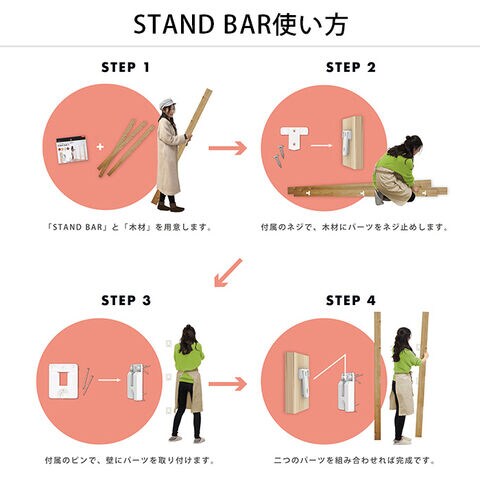 こちらは190cm以下の細い柱を2本固定できる、STAND BAR SLIM 6セット入りです。