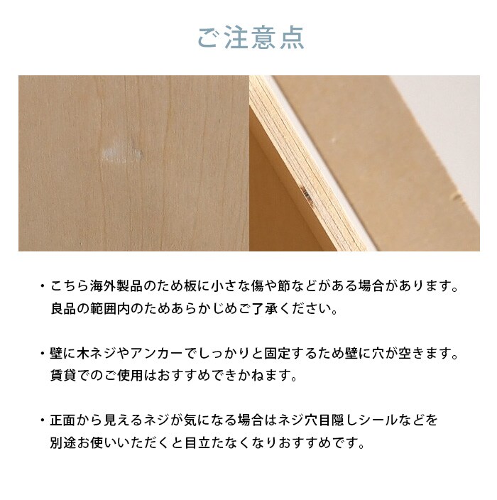・壁に木ネジやアンカーでしっかりと固定するため、賃貸でのご使用はおすすめできかねます。