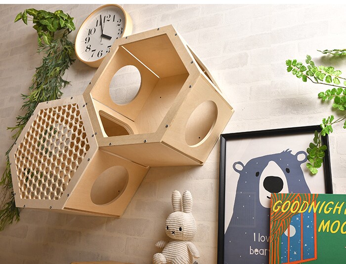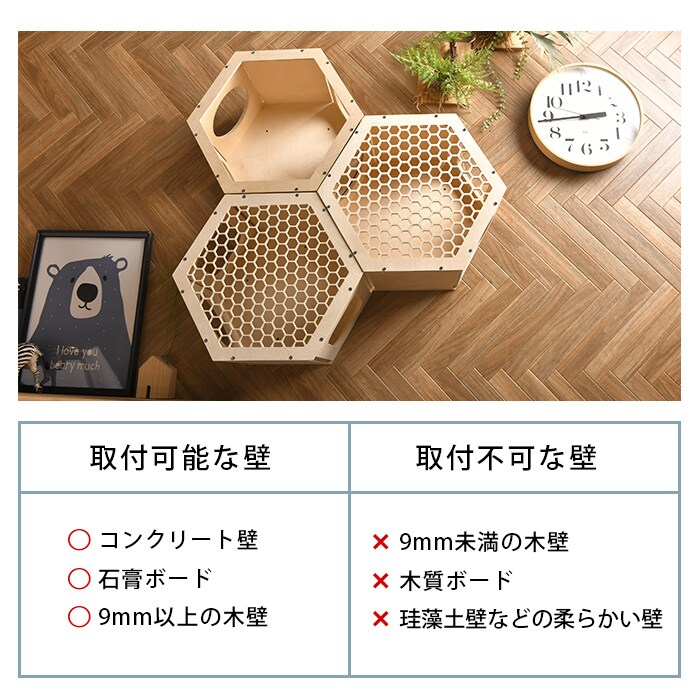 壁に取り付けて猫ちゃんが登り降りできる六角形型のキャットステップです。