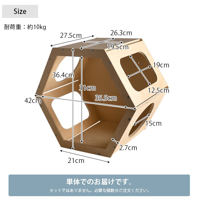 1個でハウスのように使うのはもちろん、複数個繋げればキャットウォークのように猫ちゃんが行き来することもできます。