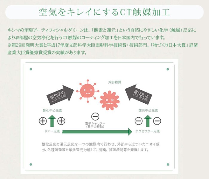 空気をきれいにするCT触媒加工を施したフェイクグリーンシリーズ。