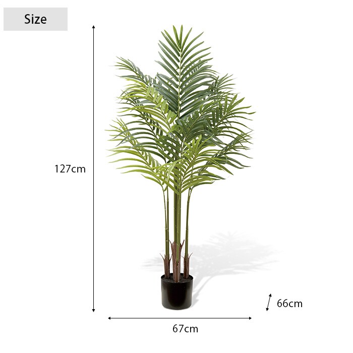 アレカパームの花言葉は「元気・勝利」。南国のリゾート感をお世話いらずで手軽にお楽しみいただけます。