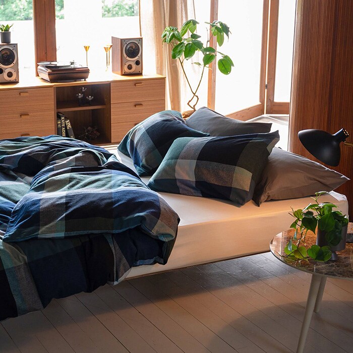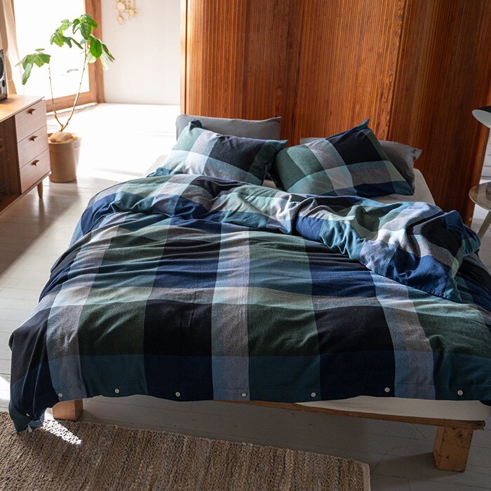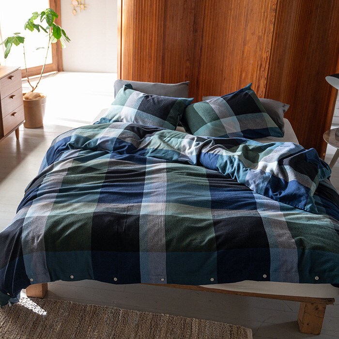月夜色のブロックチェック柄がおしゃれな「ノクターン」ピローケースLサイズ(50×70cm用)。