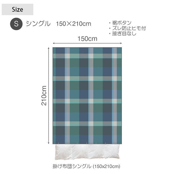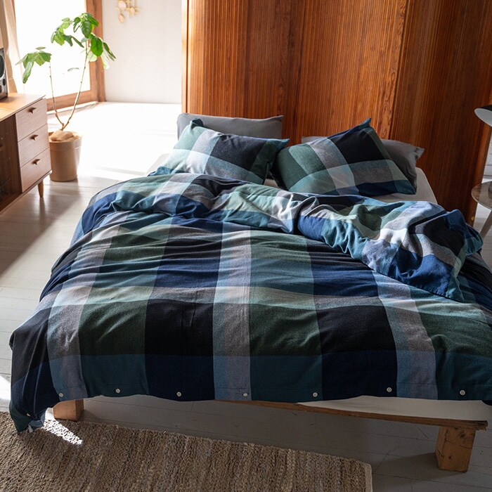 月夜色のブロックチェック柄がおしゃれな「ノクターン」シングル用掛け布団カバー。