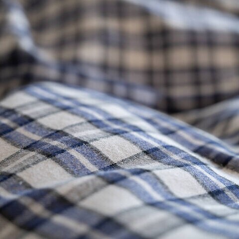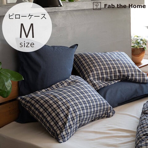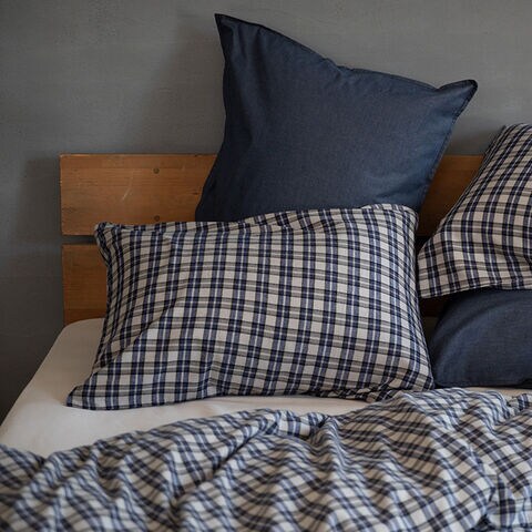 マニッシュなチェックがインテリアのポイントになる「グラニット」ピローケースMサイズ(43×63cm用)。