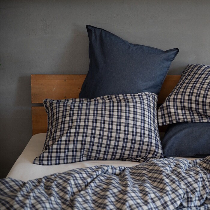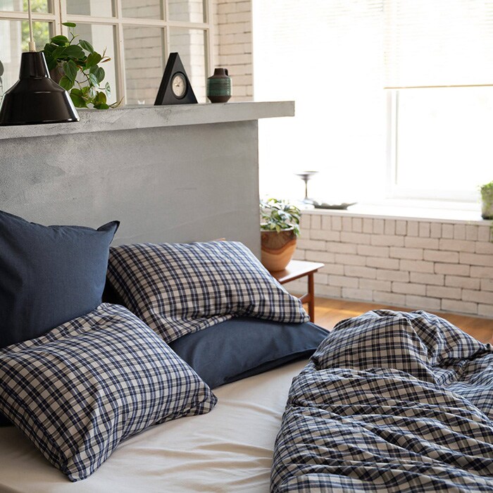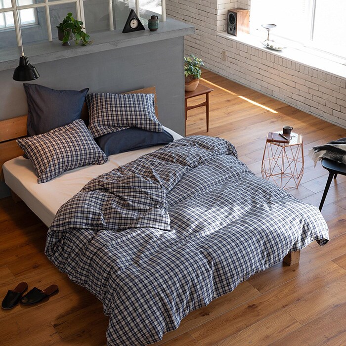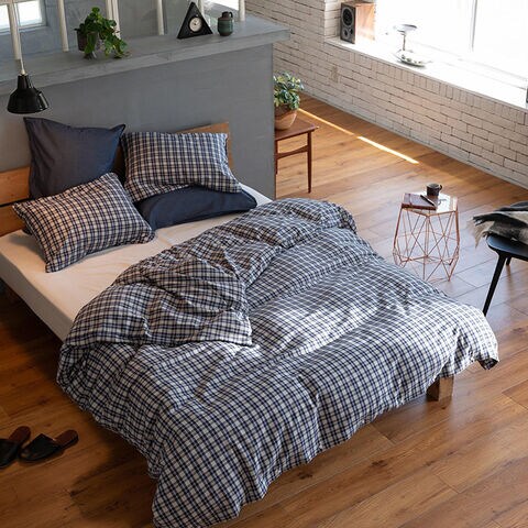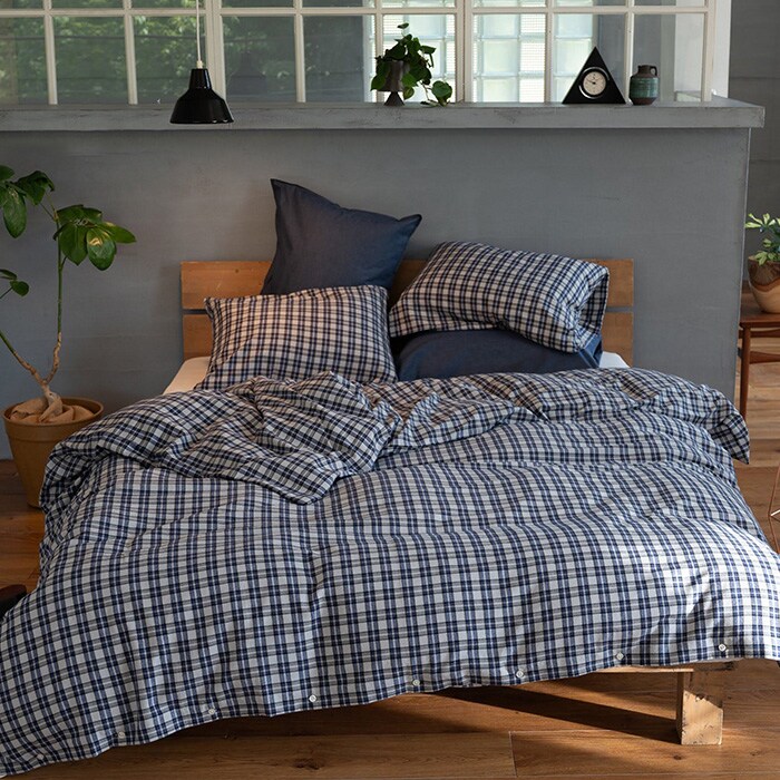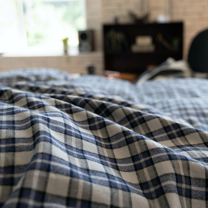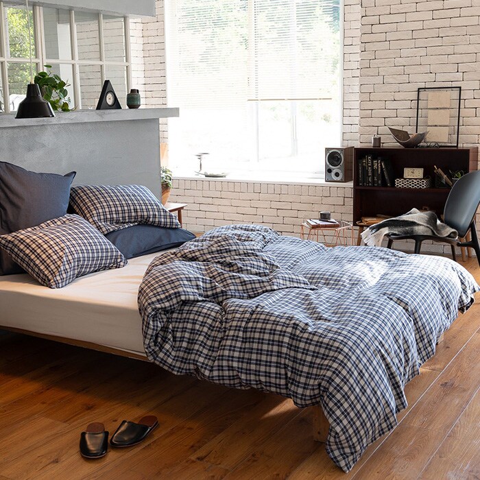 マニッシュなチェックがインテリアのポイントになる「グラニット」シングル用掛け布団カバー。