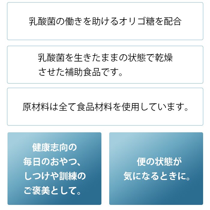 ・乳酸菌を生きたままの状態で乾燥させた補助食品です。