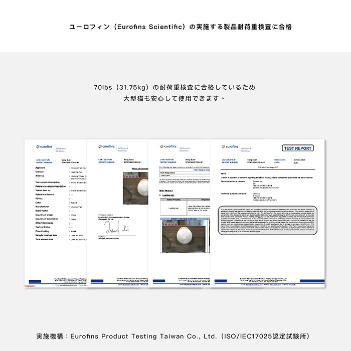 ユーロフィン(Eurofins Scientific)の実施する製品耐荷重検査に合格。