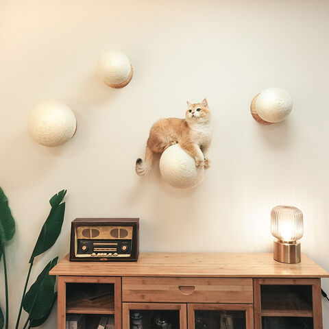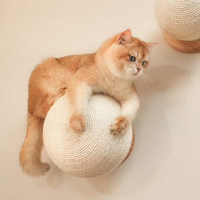 球体が宙に浮かぶようデザインされ、手巻きで仕上げた爪研ぎボールはシンプルでありながらも存在感のある佇まい。