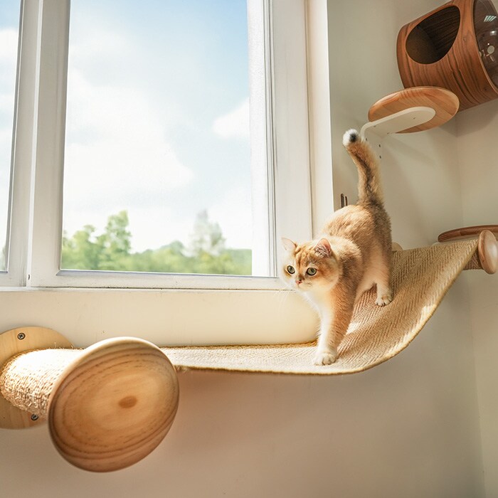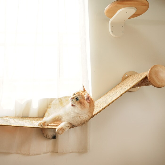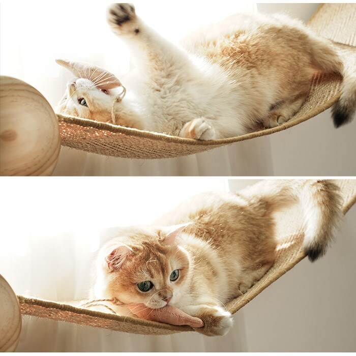 優しく包み込むハンモックサイザル麻布は爪研ぎ欲も解消。