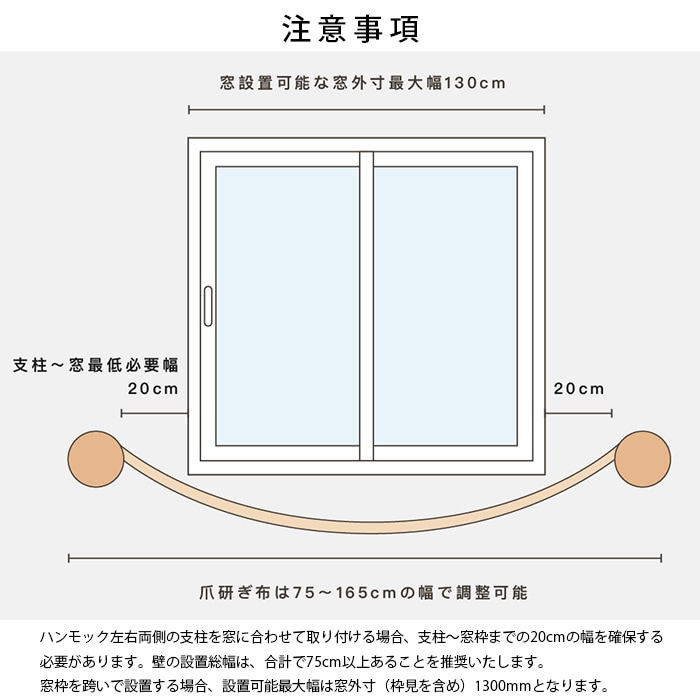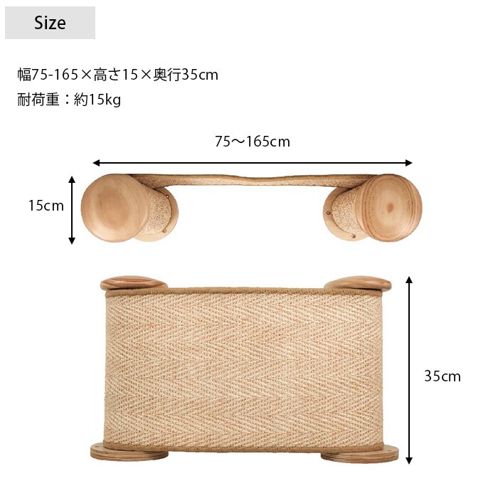※静止荷重のため、猫の使用における耐荷重は下地補強がされている場合を前提とし、15kgを目安としてください。