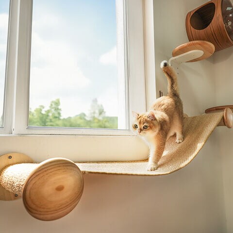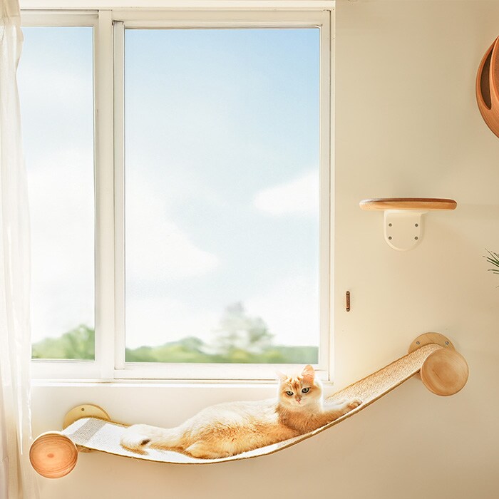 長さと角度を調整可能な爪研ぎ兼用キャットハンモックで窓際が愛猫の“ニャルソック特等席”に大変身。