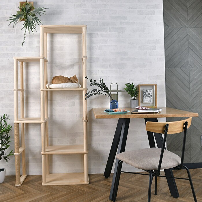 ポールや別サイズの棚板と組み合わせて、お好みのサイズでキャットタワーや収納棚が完成します。