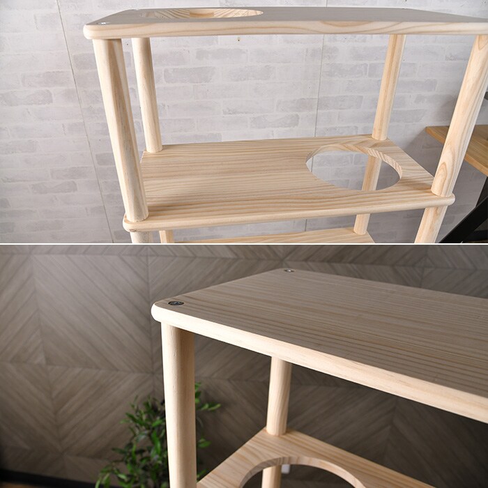 パイン棚板の側面は角を丸く削ったR加工を施し、触れても安全。
