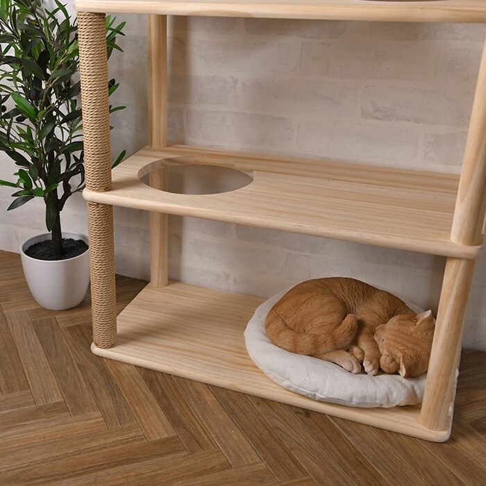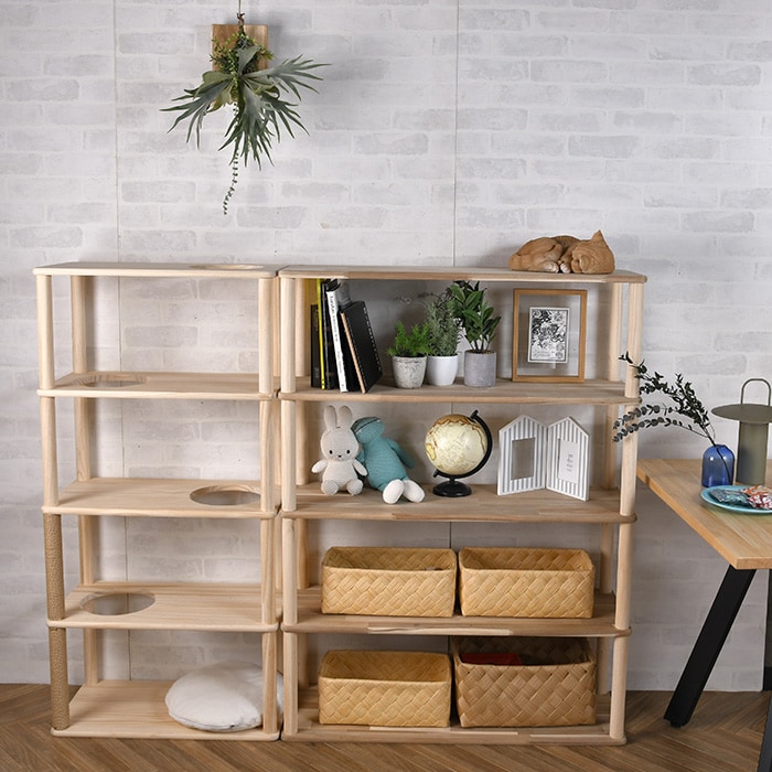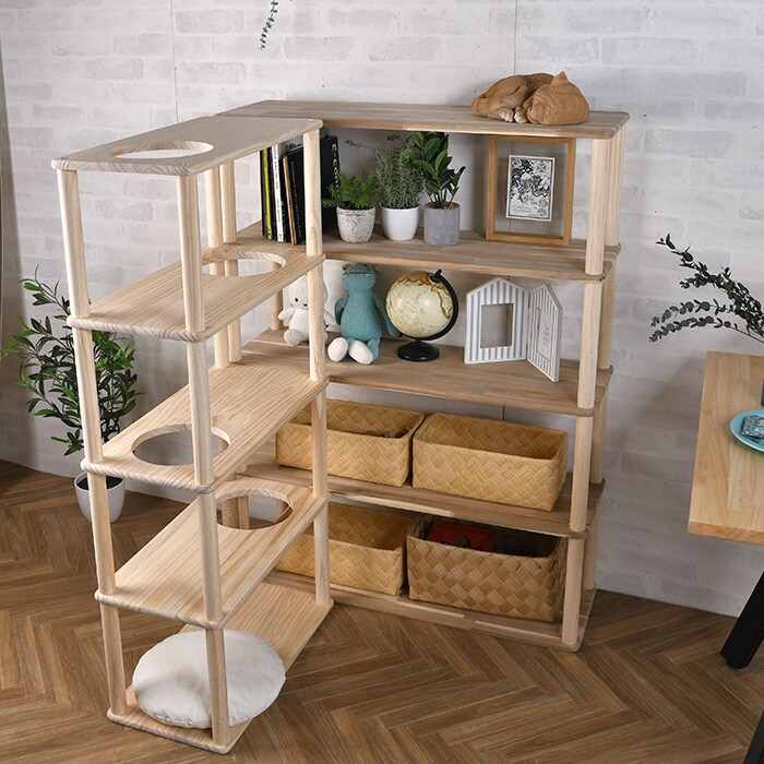 ポールや別サイズの棚板と組み合わせて、お好みのサイズでキャットタワーや収納棚が完成。