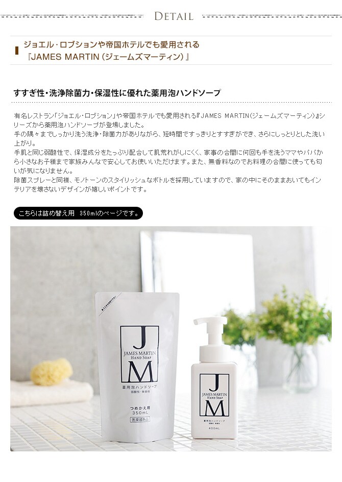 JAMES MARTIN ジェームズマーティン 薬用泡ハンドソープ 詰め替え用 350ml