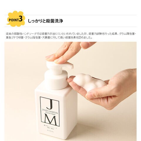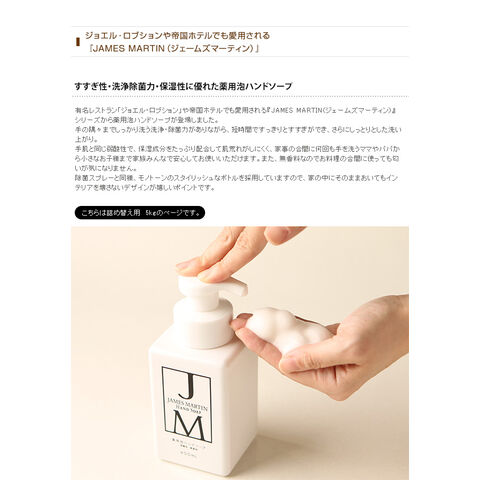 ■備考:有名レストラン「ジョエル・ロブション」や帝国ホテルでも愛用される『JAMES MARTIN(ジェームズマーティン)』シリーズから薬用泡ハンドソープが登場しました。 こちらは詰め替え用 5kgのページです。