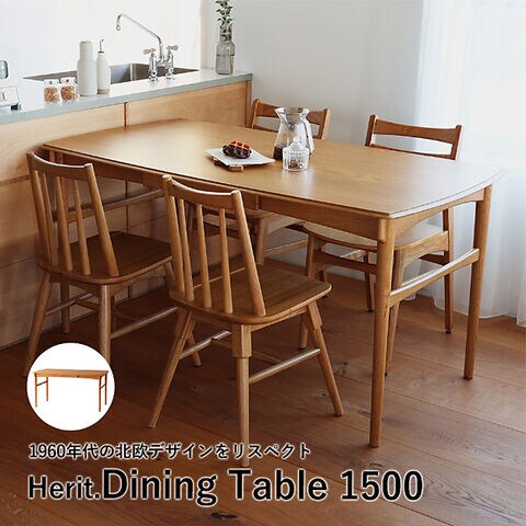 Herit. ヘリット Dining Table 1500  ダイニングテーブル 幅150cm 高さ72cm 4人掛け 木製 オーク ナチュラル おしゃれ 北欧 ヴィンテージ風 食卓テーブル リビング 家具 インテリア