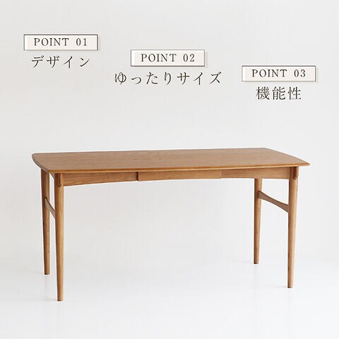 上質なオーク材を使用し、木目の美しさや自然素材の温かみが際立つダイニングテーブル(幅150cm)。
