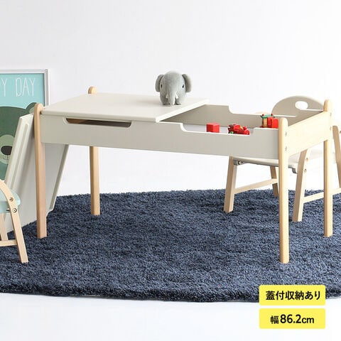 [特徴]:広々スペースで自由に!遊んで学ぶ キッズプレイテーブル。蓋付きなので、遊んだ後は中におもちゃを入れてスッキリ収納、後片付けの習慣をつけることができます。