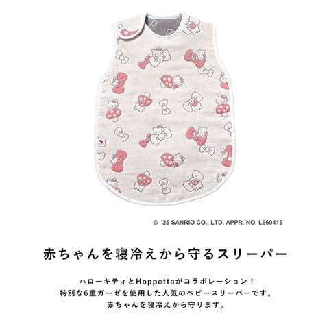 HELLO KITTY × Hoppetta 6重ガーゼ ベビースリーパー 25291015 ハローキティ キティちゃん 赤ちゃん 新生児 日本製 かわいい おしゃれ 秋冬 寝冷え防止 寝冷え対策 出産祝い ギフト 贈り物