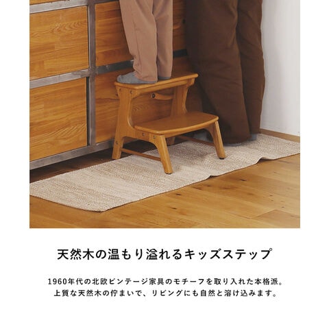 Herit. ヘリット キッズステップ HES-3879NA ナチュラル 踏み台 子供用 おしゃれ シンプル 北欧 木製 2段 滑り止め キッチン 洗面所 トイレ 手洗い