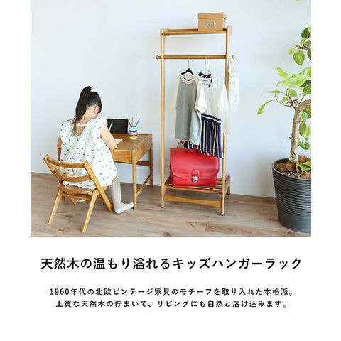 Herit. ヘリット キッズハンガーラック HEH-3878NA ナチュラル 子供用ハンガーラック 衣類 収納 洋服 おしゃれ シンプル 北欧 木製 ランドセル 収納 高さ調節可能 幼児 小学生 低学年 制服 おきがえ 保育園 幼稚園