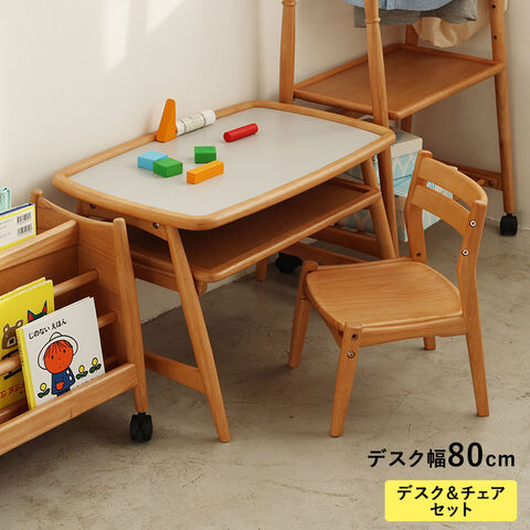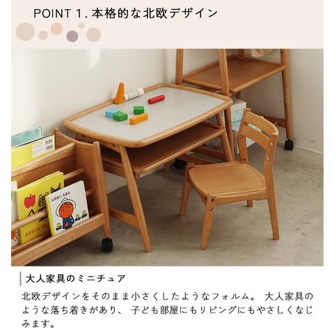大人家具のような落ち着きがあり、子ども部屋にもリビングにもやさしくなじむキッズデスク&チェアセットです。