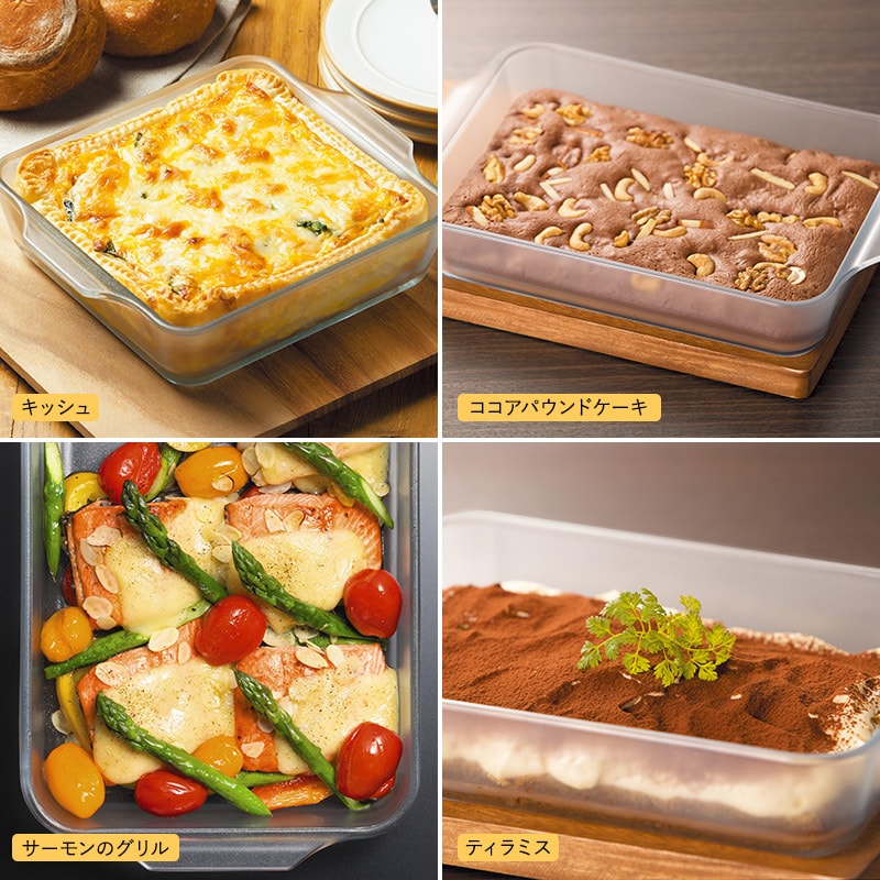 下ごしらえをして冷蔵庫へ保存し、お食事前にオーブンや電子レンジで調理。焼きあがったらそのまま食卓へ。食べ終わったら食洗器で洗い物もあっという間。冷凍庫で保存もできるので、冷たいデザートにもおすすめです。1枚で何役もこなしてくれるから、毎日の家事がグッとラクに。心と時間に余裕を与えてくれる頼もしい調理容器です。