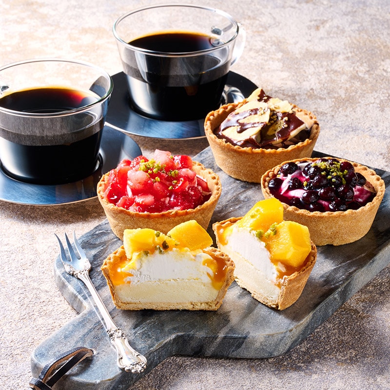 色鮮やかな南国をイメージするマンゴーや、華やかなストロベリーを贅沢にトッピングしたアイスクリームタルトです。感謝やお祝いの気持ちを込めて、幸せなひとときを大切なあの人に贈りましょう。