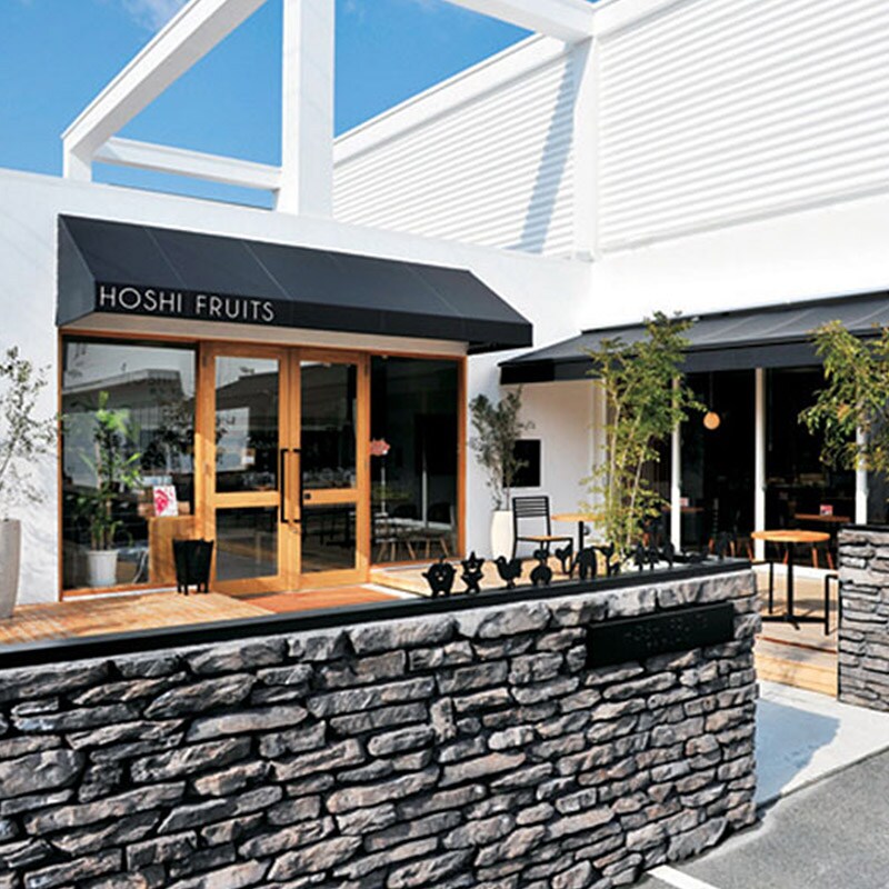 「本当においしいフルーツを食べてもらいたい」そんな思いから生まれたのが、フルーツギフト&カフェ「ホシフルーツ」です。店内にはいつも、中国地方を中心に近隣の地域から取り揃えた旬の果物がずらり。市場に35年以上通い続けるフルーツの目利きが、季節ごとに旬のフルーツを厳選しています。フルーツの色どりや食感にこだわり抜いたスイーツの数々を、ぜひお楽しみください。