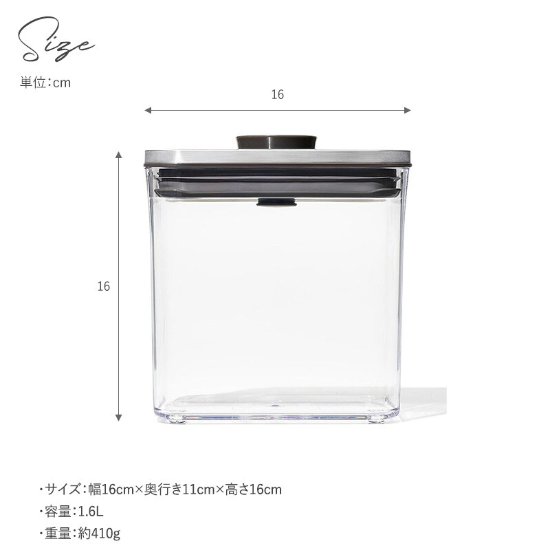 OXO オクソー ステンレスポップコンテナ レクタングル ショート 1.6L 3118800 保存容器 キャニスター 密閉 透明 おしゃれ クリアー かわいい