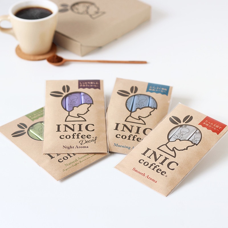 5秒で溶ける従来のインスタントコーヒーとは全く異なる、本格的な「ドリップ・ド・コーヒーパウダー」。INIC coffeeの人気フレーバー4種がセットになった贅沢なギフトセットです。