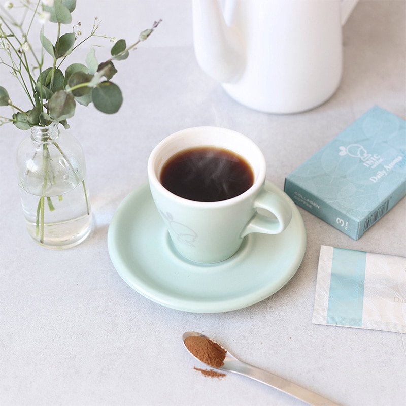 パウダーにお湯を注ぐだけで、ドリップで淹れたような香り高いコーヒーができあがります。深いコクとキレ、豊かな香りを楽しみながら、体の内側から美容と健康をサポートします。