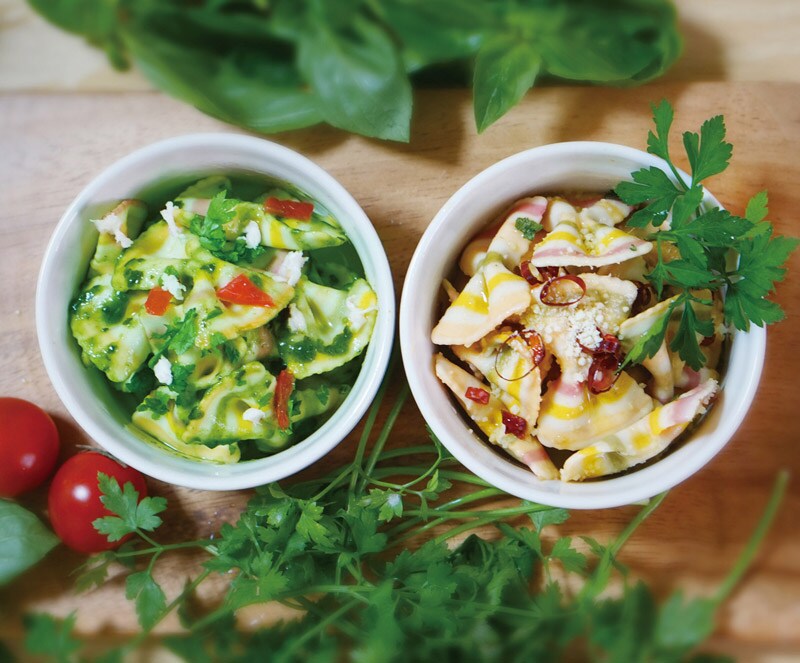 食卓にお花が咲いたようなカラフルな色が印象的なパスタ。この美しい色はすべて自然素材由来のもの。合成着色料や香料は一切使用しておらず、ほうれん草やパプリカなどで色付けをしているので、小さなお子さまでも安心してお召し上がりいただけます。