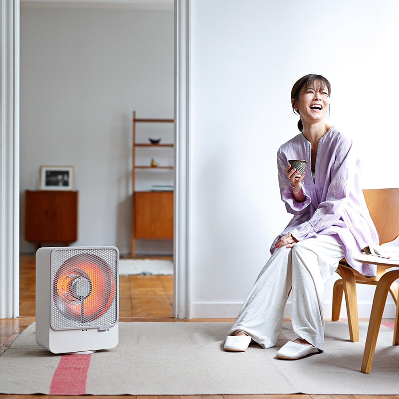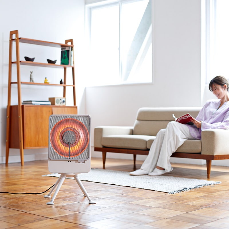 「反射板×ファン」の独自構造で省エネ&効率化を実現したヒーター。本体背面を向いたヒーターの熱を反射板で反射させることで、熱がお部屋全体に拡散することなく、ほしいところに集中的に熱を届けることができるため、600Wの消費電力でも2倍の1200W相当のあたたかさに。省エネで、家計にも環境にもやさしいヒーターです。