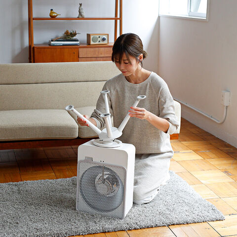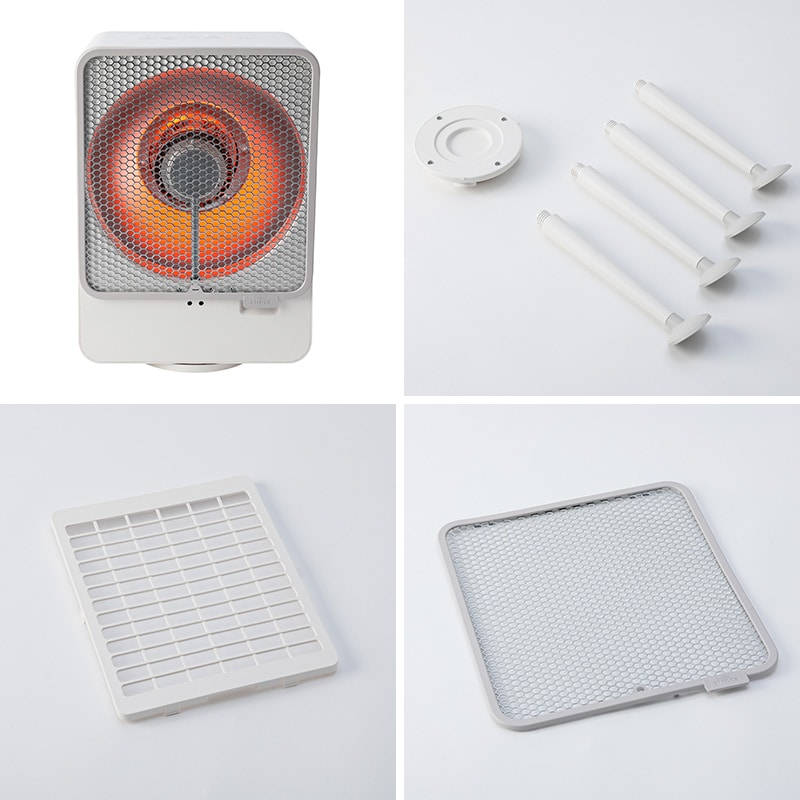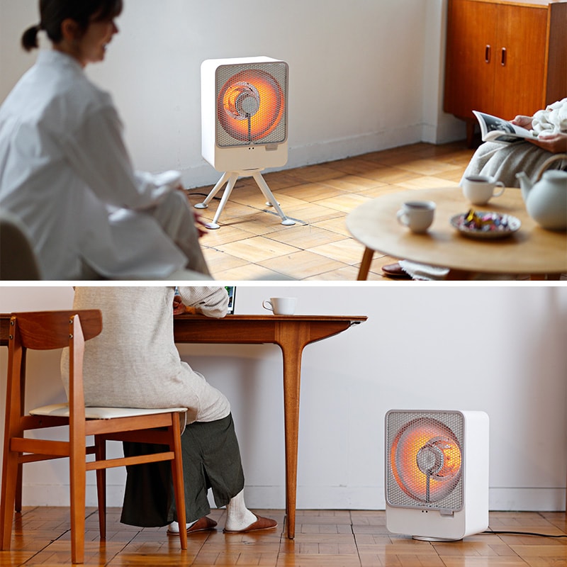 スタンドは簡単に着脱可能で、スタンド・床置きの2パターンで使い分けができます。50°と100°の2段階の首振り運転に加え、ファンのON/OFFもできるので、一人であたたまりたいときも、複数人・広範囲であたたまりたいときも、シーンに合わせて使い分けて効率よくあたたまることができます。