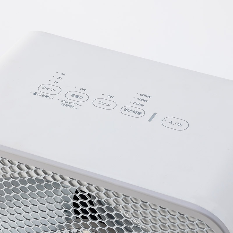 本体に約30cm近づき、本体前面の赤外線センサーを遮ると自動で電源が切れる「安心センサー機能」や、万が一の転倒の際にも安心の「転倒・振動検知機能」、6時間経過後自動で運転を停止する「自動電源オフ機能」、本体の異常な温度上昇を検知した場合に自動で電源を切る「異常過熱検知機能」。4つの充実の安全装置設計で使う方を選びません。