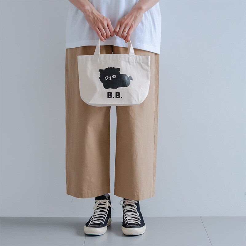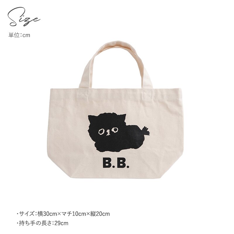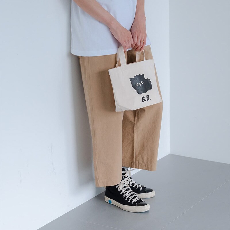 イラストレーター 塩川いづみさんの描いた「ビション・フリーゼ」がモチーフの、人気の「MAMBO」の抜け毛から生まれた、新しいお友達の「B.B.」。もこもこした黒い毛からのぞく丸いタレ目がどこか物憂げに感じられる、こんもりと丸まったかわいらしいポーズのB.B.トートバッグです。ナチュラルな生成り色の生地で、やわらかな印象のアイテム。どんなファッションにも馴染むので、幅広いシーンで気軽にお使いいただけます。