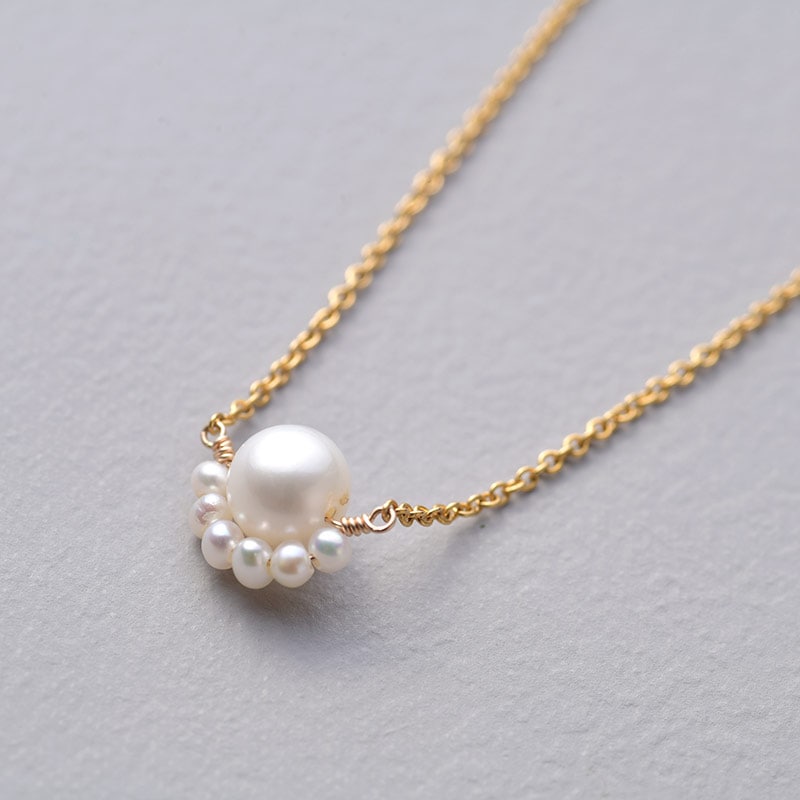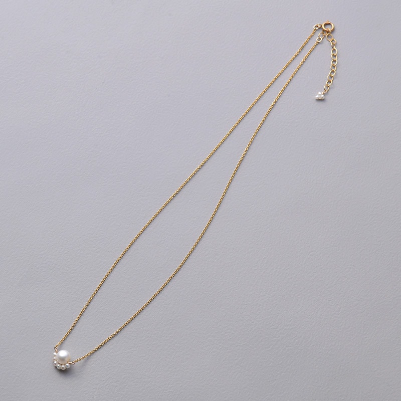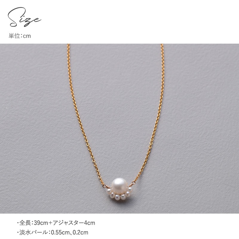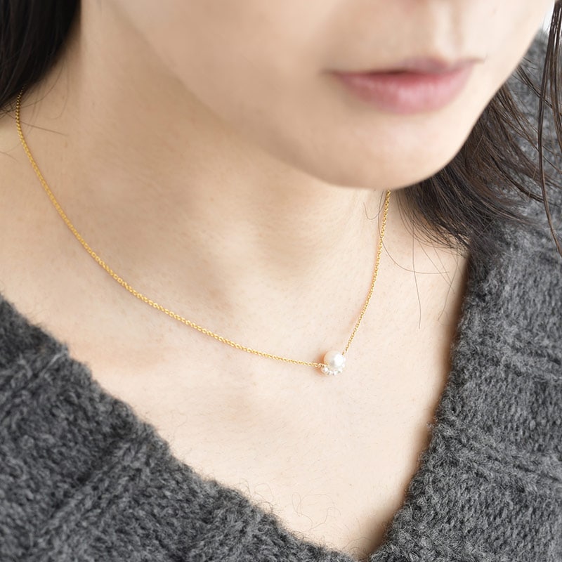 胸元を綺麗に、そしてかわいらしく見せてくれる、お花の蕾をイメージした可憐なデザインのネックレス。淡水パールは光沢があり肌馴染みのいい色で、甘すぎない大人のかわいらしさを演出します。カジュアルコーデからシンプルコーデまで相性は抜群で、幅広くお楽しみいただけます。