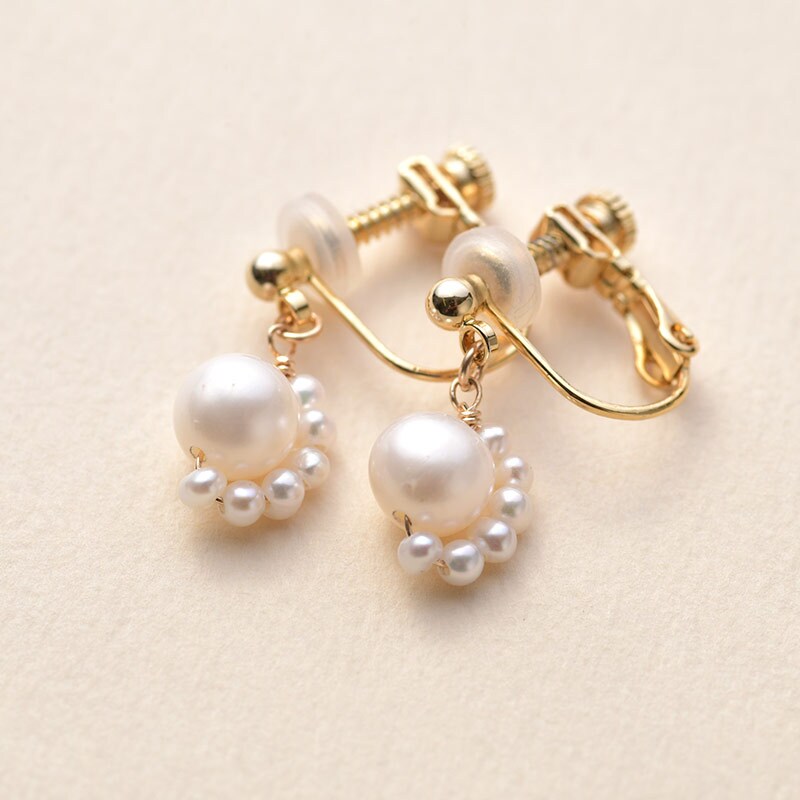 耳元を綺麗に、そしてかわいらしく見せてくれる、お花の蕾をイメージした可憐なデザインのイヤリング。淡水パールは甘すぎない大人のかわいらしさを演出します。カジュアルコーデからシンプルコーデまで相性は抜群で、幅広くお楽しみいただけます。