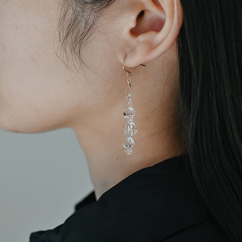 HARIOが製造する「耐熱ガラス」は熱に強いだけではなく、ガラスを伸ばしたり、繋げたり、加工がしやすいという特徴があります。その特徴を活かし、耐熱ガラスだからこそできる繊細なデザインをつくることができます。また、耐熱ガラスは他のガラスに比べて比重が軽く、身につけていてもストレスを感じません。