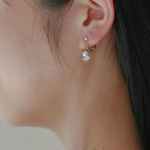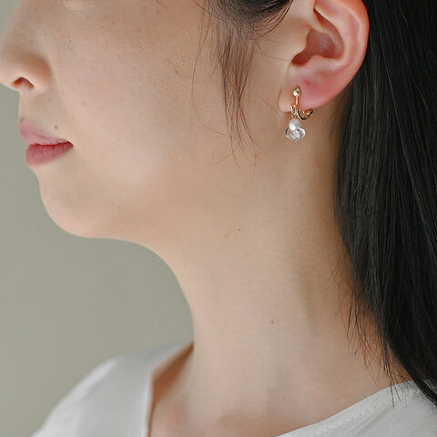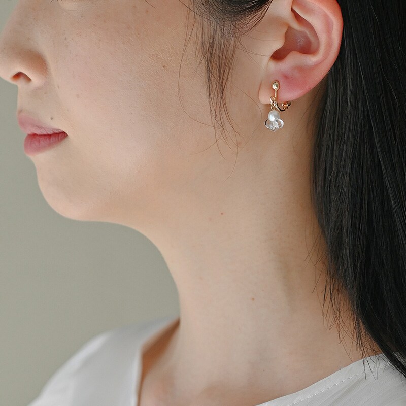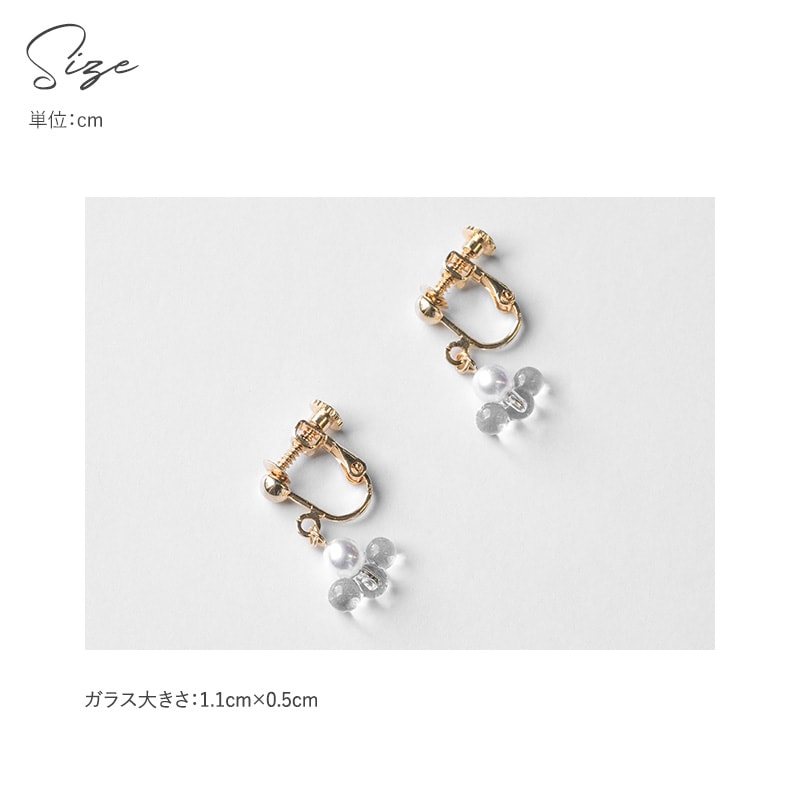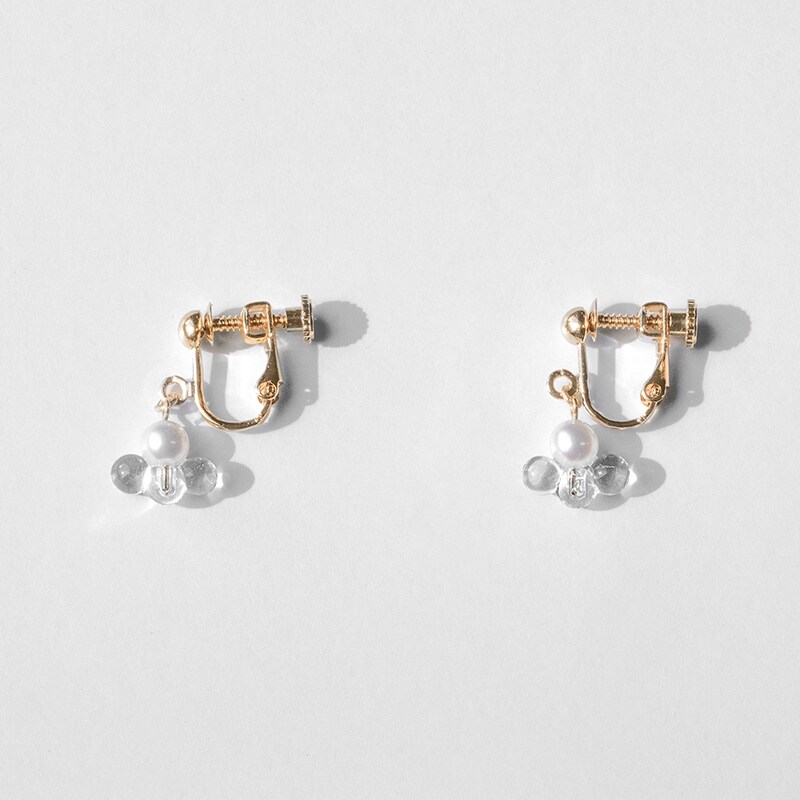 薄明りの夜空で星が静かに輝きはじめるような光景をイメージしたイヤリング。シンプルなパールに合わせて連なるガラスの光が、耳元で印象的に煌めきます。一粒パールとは一線を画す特徴的なデザインが魅力です。