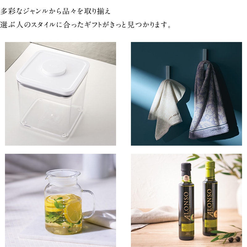 様々なシーンを思い浮かべながら選ぶひととき。贈られた時から選ぶ過程まで、心動かされる物との出会いも一緒にお楽しみいただけます。それぞれのスタイルに合う上質な品々を、贈り主様から先様へ感謝の気持ちをのせて大切に贈り届けます。