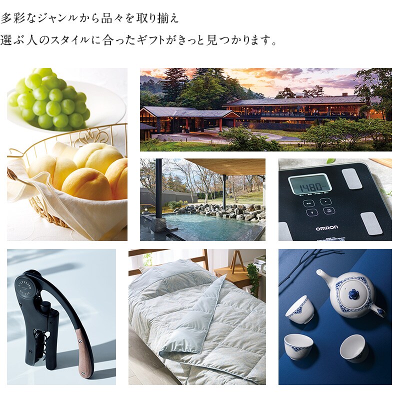 様々なシーンを思い浮かべながら選ぶひととき。贈られた時から選ぶ過程まで、心動かされる物との出会いも一緒にお楽しみいただけます。それぞれのスタイルに合う上質な品々を、贈り主様から先様へ感謝の気持ちをのせて大切に贈り届けます。