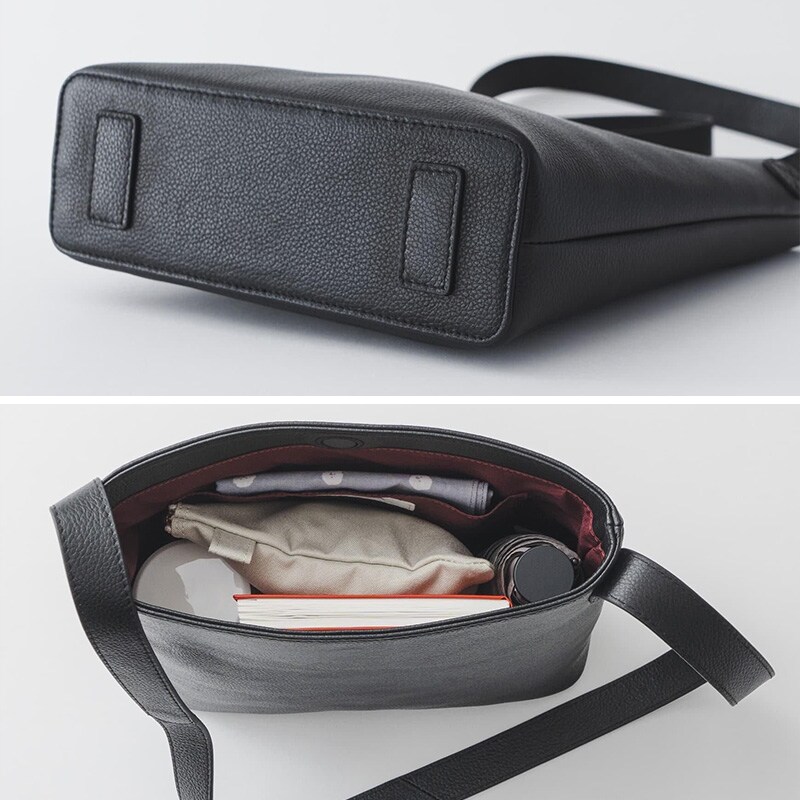 牛革ならではの上品なシボ感が美しい、大人の表情が楽しめるショルダーバッグ。しっとりと落ち着いた雰囲気で、フォーマルにもカジュアルにもお持ちいただけます。幅広い服装に似合うので、様々なシチュエーションで活躍します。