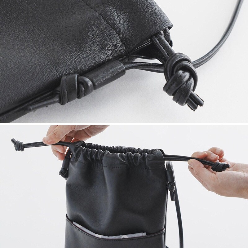 しっとりと柔らかな羊革の、巾着タイプのショルダーバッグ。カジュアルな巾着仕様でありながらシックな羊革を使うことで、大人の女性らしい、品のあるバッグに仕上がりました。
