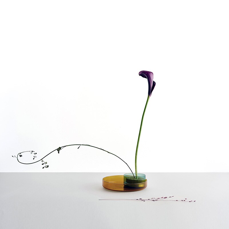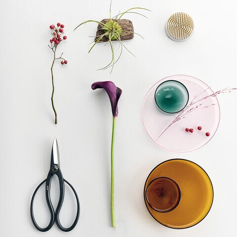 伝統的な日本の花器と、西洋の美しいカラーガラスを融合させた遊び心あるデザインの「ケンザンセット」。日本の伝統文化として、和の精神や美意識を表現する芸術をお楽しみいただけます。