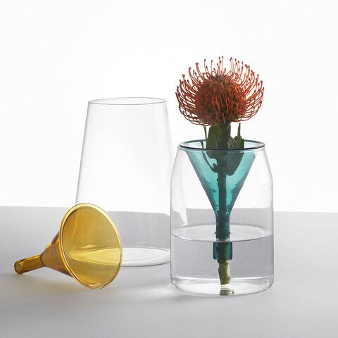 日本語の「華道」からインスパイアされたシリーズのフラワーベース。カラーグラスでお花をまっすぐに固定できます。さらに、カラーグラス部分は取り外し可能なので、様々なお花を生けられます。